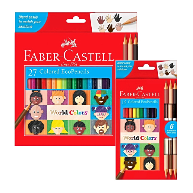 Set of 15 or 27 eco colour pencils, includes 6 skin tones