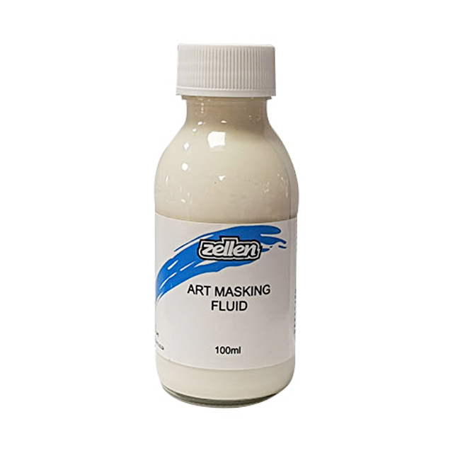 Masking fluid is a rubbery-fluid watercolour medium used to help artists leave small areas of bright white paper, or the original paper colour, or the lightest area of colour. It is also used for highlights and outlines. It can be peeled or rubbed off after the watercolour has been applied and completely dried.